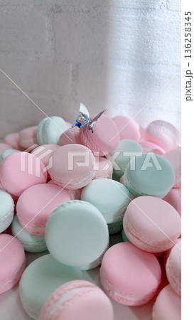 パステルカラーマカロン フェイクスイーツ 蝶々がとまる