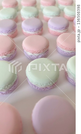 並んだパステルカラーのマカロンのフェイクスイーツ