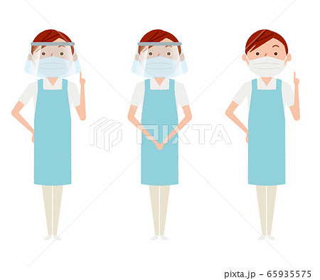 マスク フェイスガード エプロン 女 イラスト