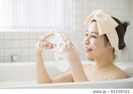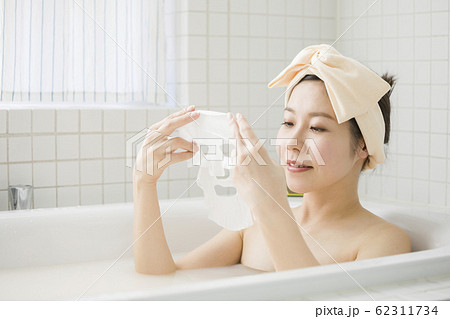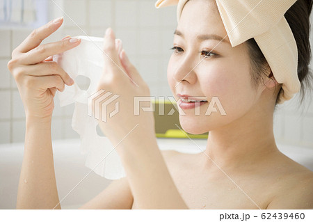 フェイスマスクを使う女性 入浴イメージ バスタイム