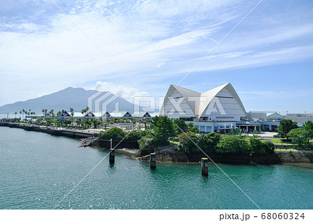 桜島と桜島フェリーと鹿児島水族館の美しい風景