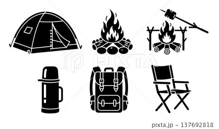 Black Solid Autumn Camping and Bonfire Equipment Silhouette Icons