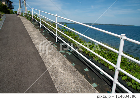 青空と橋の手すりのシンプルな風景写真(背景・素材向け)