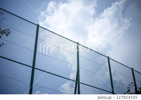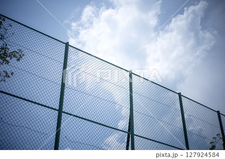 フェンス越しの空 ドラマチックな空 夏空 青空 公園 イメージ