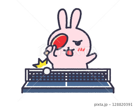 卓球でネットインする、うさぎ(線画カラー)のイラスト