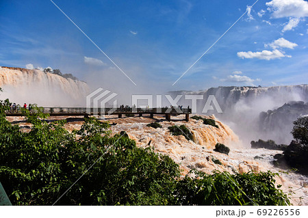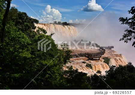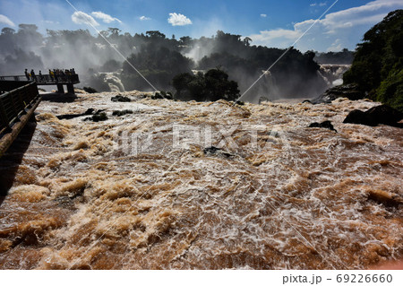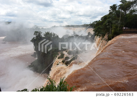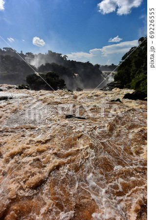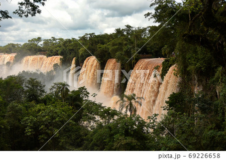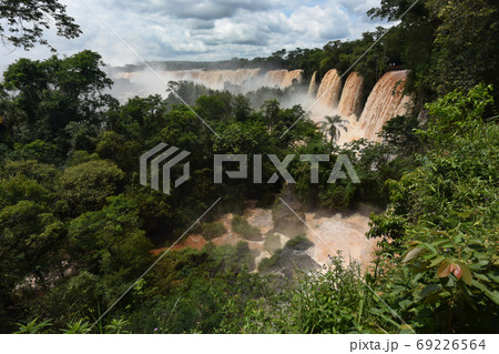 雨季のイグアスの滝。アルゼンチンとブラジルにまたがる大瀑布。
