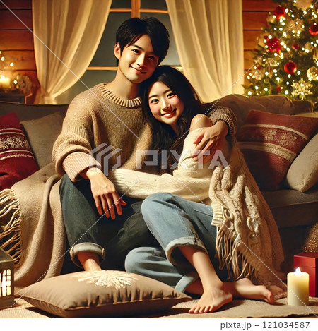 クリスマスを楽しんで、くつろいでいるカップルを生成で描きました