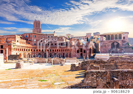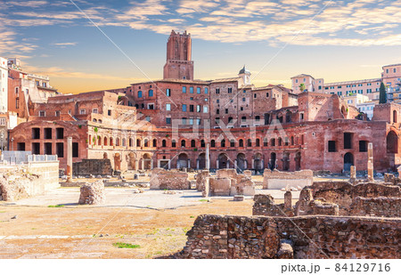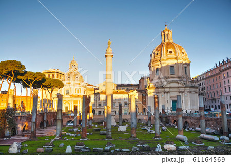 Beautiful Trajan's Forum remains at sunset, Rome, Italy