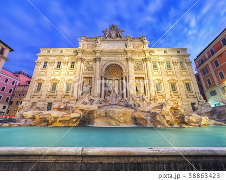 The Trevi Fountain or Fontana di Trevi at sunset, Rome, Italy