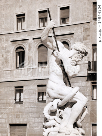 Famous Fountain of Neptune on Piazza della Signoria in Florence,