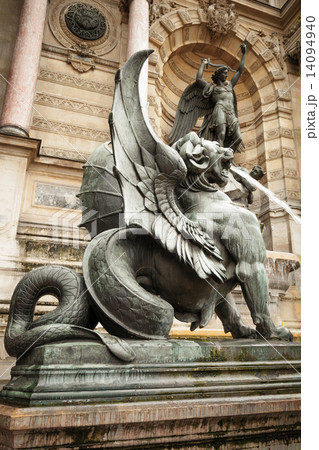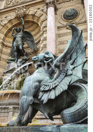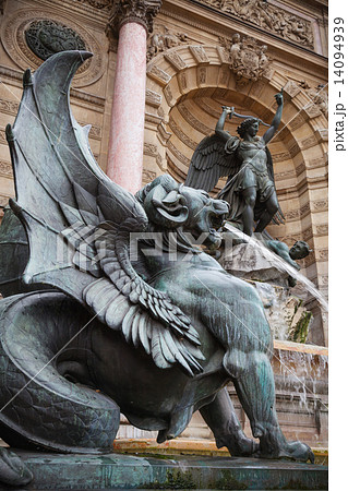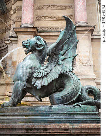 Winged lion statue, Fontaine Saint-Michel in Paris