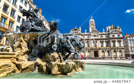 The Fontaine Bartholdi and Lyon City Hall on the Place des Terreaux, France