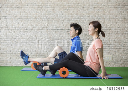 ストレッチロールを使う男女 フィットネスイメージ フォームローラー