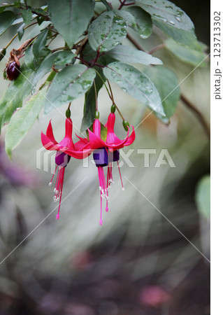 エレガントな雰囲気を持つフクシアの花ー七