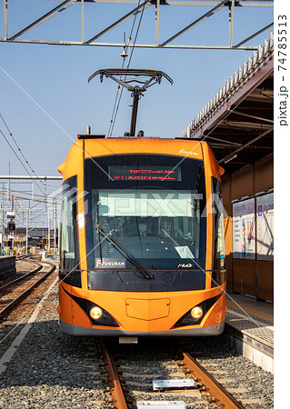 オレンジ色の低床路面電車FUKURAM (フクラム)