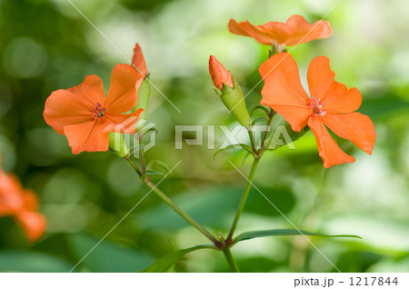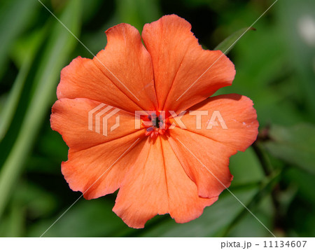フシグロセンノウ 山野草 オレンジ色の花 緑の自然背景