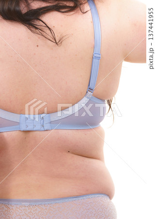 Fat woman in lingerie back view.