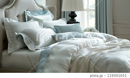 Soft and sumptuous this silk bedding set adds a touch of elegance and sophistication to the tranquil ambiance of this bedroom