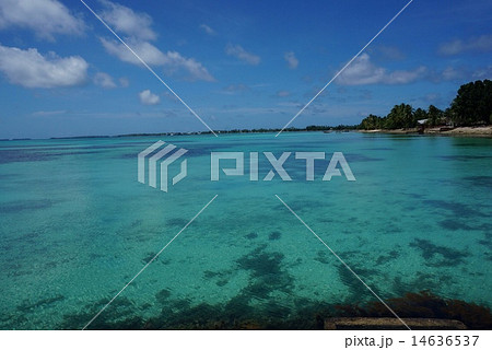 オセアニア・ポリネシアの島国ツバル 首都のフナフティ環礁ファタト島の遠浅なラグーン