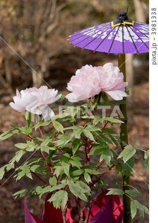 冬の日差しを浴びて咲く満開のピンクの冬牡丹 花1月フユボタン冬牡丹122上野東照宮H4.3