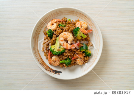 fried rice with broccoli and shrimps