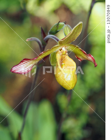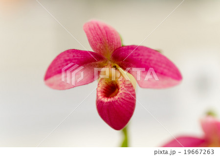 熱帯植物のフラグミペディウム メモリアディッククレメンツの花