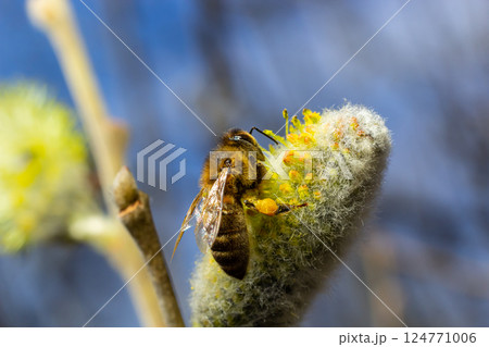 Forsythia. Blooming forsythia bush. Yellow flower on a branch of forsythia.