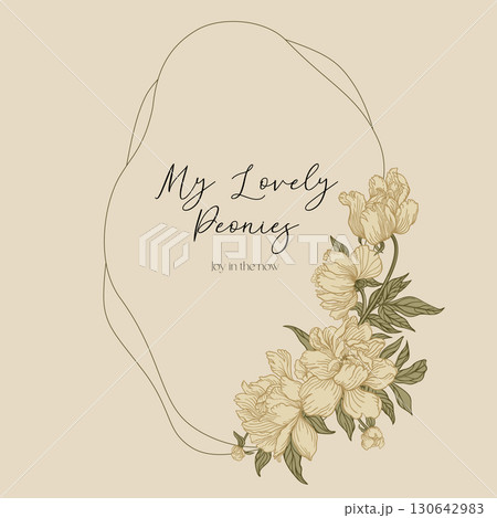 Oval frame with peonies.