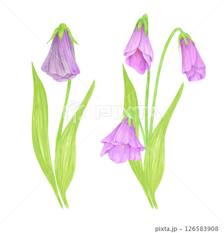 Hand drawn watercolor purple wildflower. Flower of the field isolated on white background. Can be used for postcard, label, scrapbook and other printed products.