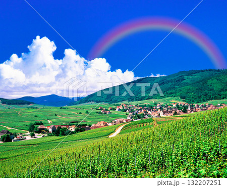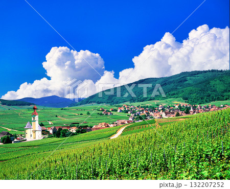 フランス東部の美しい田園風景とヨーロッパ風教会合成