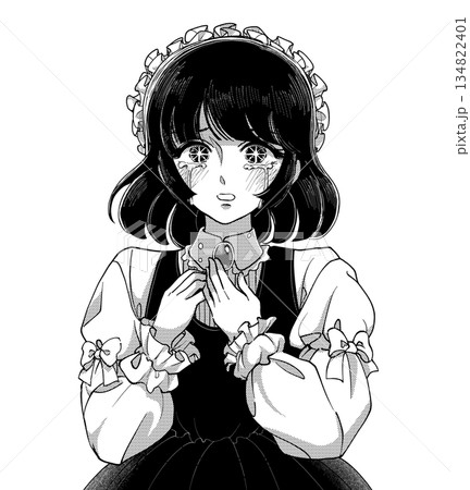 レトロ漫画風・号泣するロリィタファッションの女の子