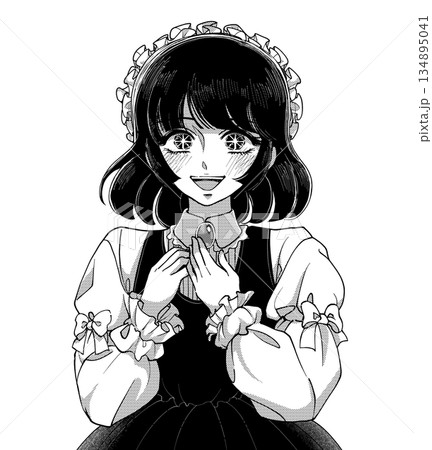 レトロ白黒イラスト・感激する少女漫画風お姉様