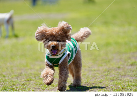 野原を走るトイプードル