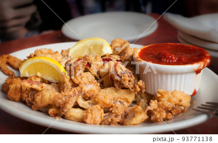 白い皿に盛られたカラマリフリット(イカの唐揚げ)