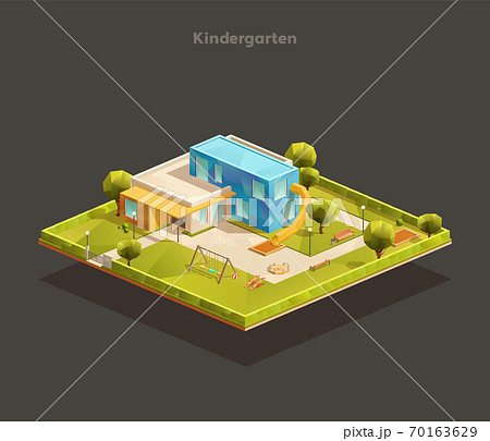 Isometric Modern Kindergarten with playground