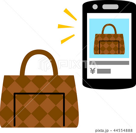 スマートフォンでのバッグの売買画面とバッグ