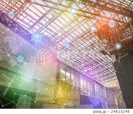 現代的ビルの内観と無線通信 アブストラクトイメージ
