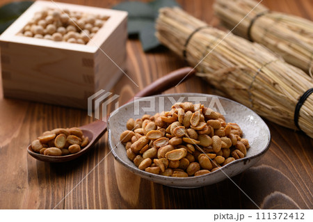 そのまま食べられて栄養たっぷり ドライ納豆 (木目背景) 乾燥納豆