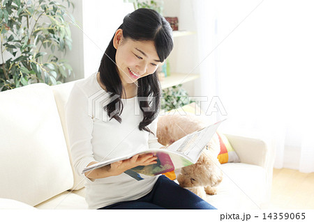 かわいい部屋で雑誌を読む女性