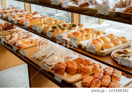 ベーカリーショップ、パン屋、店頭に並ぶパン