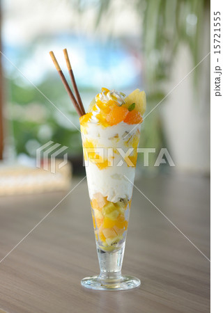 マンゴーパフェ マンゴースイーツ マンゴーの果肉とアイスクリーム イメージ素材