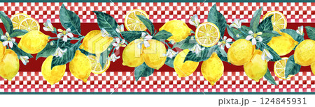 Tropical seamless pattern with yellow lemons. Fruit watercolor painted illustration