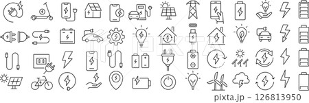 ベクターでモノクロの電気に関する線画アイコンセット