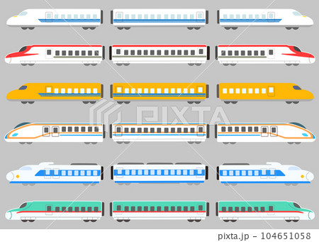 シンプルでカラフルな新幹線のイラストセット 輪郭線あり