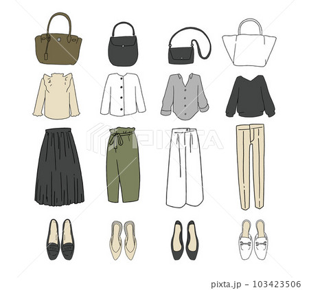 いろんな服や小物の手描きイラストセット(カラー/輪郭線なし)