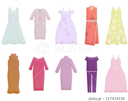 白のカラードレスのイラストセット
