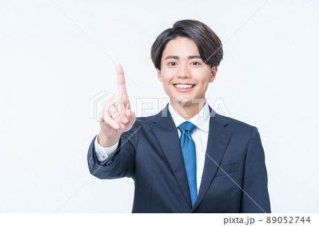 人差し指を立てるポーズをするビジネスマン