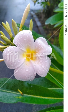 雨の日のプルメリア(沖縄県・宮古島)