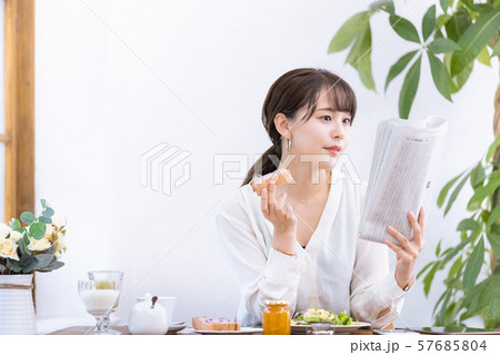 ビジネスウーマン 朝食 新聞 定期購読 軽減税率