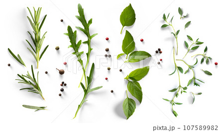fresh mediterranean herb and spices on white background. Food design element